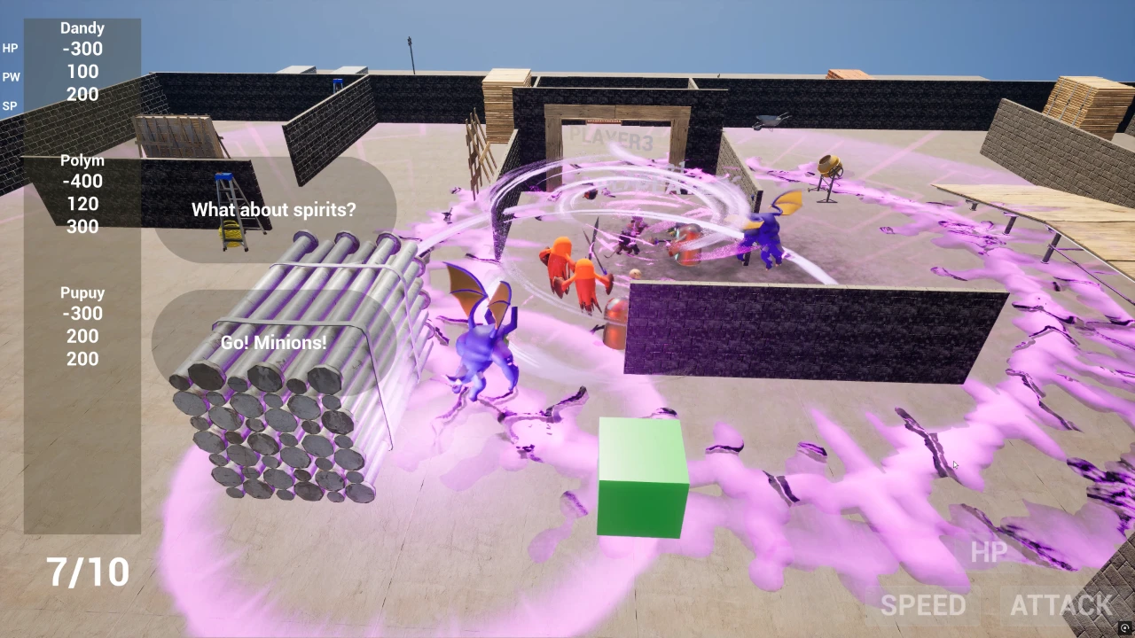 —侵入者を撃退!― 建物内に侵入した敵を倒そう ブロックをクリックしたら モンスターを召喚できる アイテムを全部取られたら敗北 全5ステージをクリアしよう ゲームの特徴 ・マウスとキーボードの簡単操作 クリック操作と視点移動(WASD+ドラッグ) ・モンスターと侵入者は自動操作 ・時間によるモンスターの進化 ・個性は聴力重視や魔法攻撃・視覚のみなど ・管理者による全体攻撃 ・早く倒すと逆に不利になる ・勝てない人の救済策で青いブロック 運が良ければ戦闘が楽になるかも ゲーム内容 ・全5ステージ ・制限時間まで守り切るか敵を倒せばクリア ・最終ラウンドは全員の敵を倒すまで終わらない ・緑色のボックスをクリックでモンスター召喚 再度召喚には時間が必要 ・様々な個性を持つモンスター達 時間経過で進化して強くなる ゲーム操作 ・キーボードによるキャラクター操作 WASD + 視点操作 マウスドラッグ ・マウスクリックで各種操作 ・EscとキーボードのPでポーズメニュー設定や言語変更 配信許可しておりますので こちらに連絡は必要ありません 詳しいガイドラインは公式HPに記載してありますが 常識の範囲内ならOKです 質問 Q:攻撃が当たらないときがある A:攻撃しても距離があるとヒットしません Q:敵orモンスターが止まっている A:自動操作なのでそんな時もあります