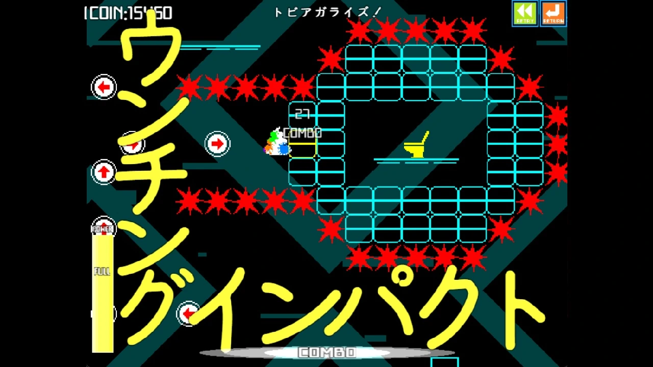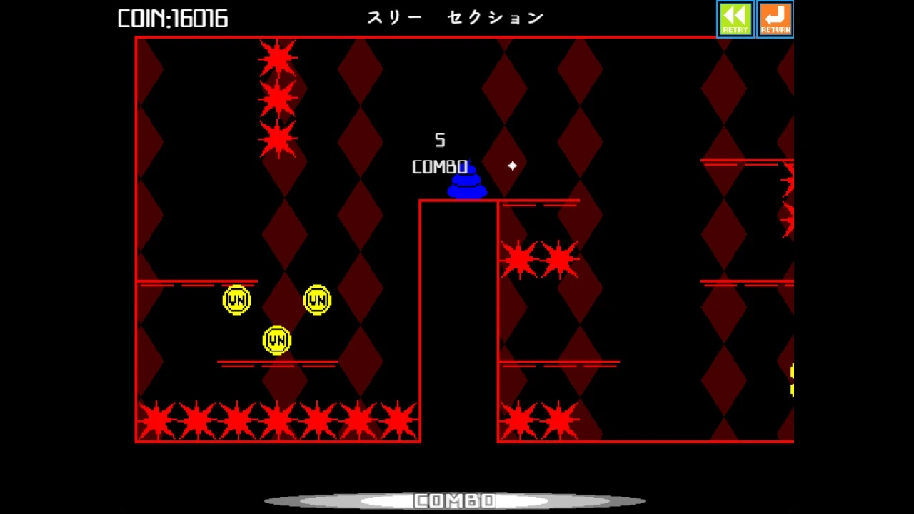 『ウンコテクニカ』は、ネオンに彩られた世界で、自動で突き進む「ウンコ」をゴールである便器へとジャンプで導く、高難易度2Dアクションです。 コミカルな見た目とは裏腹に、プレイヤーに求められるのは、正確なタイミングと精密な操作。 高難度アクションを愛する全ての方へ、究極の「腕試し」をお届けします。 「このゲームには心を動かすようなシナリオや魅力的なキャラクターといった要素は一切ありません。」 ウンコを便器に導け! 単純にして奥深いゲームプレイ ゲームの操作は「ジャンプ」のみ。 しかし、この単純な操作だけで、150を超えるバラエティ豊かなステージを攻略していくことになります。 何度も失敗し、試行錯誤しながらゴールを目指す、骨太なアクションがあなたを待っています。 バリエーション豊かなステージ 触れると高くジャンプする泡、壊れる足場、トゲの壁、ON/OFFスイッチ……。 ステージが進むにつれて、次々とユニークなギミックが出現します。 ステージごとに異なるギミックやトラップを乗り越えるには、反射神経とパズル的な思考力が不可欠です。 プレイを彩るクールなビジュアルとサウンド レトロフューチャーなネオンカラーのグラフィックと、中毒性のあるクールなBGMが、ゲームのスタイリッシュな雰囲気を演出します。 集めて、回して、自分だけのウンコをカスタム! ステージで入手できる「UN-COIN」を消費して、 ウンコの見た目をカスタマイズできるガチャを回したり、さらなる高難度ステージを解放することができます。 個性豊かなアイテムをすべて集め、コンプリートを目指すやり込み要素も満載です。