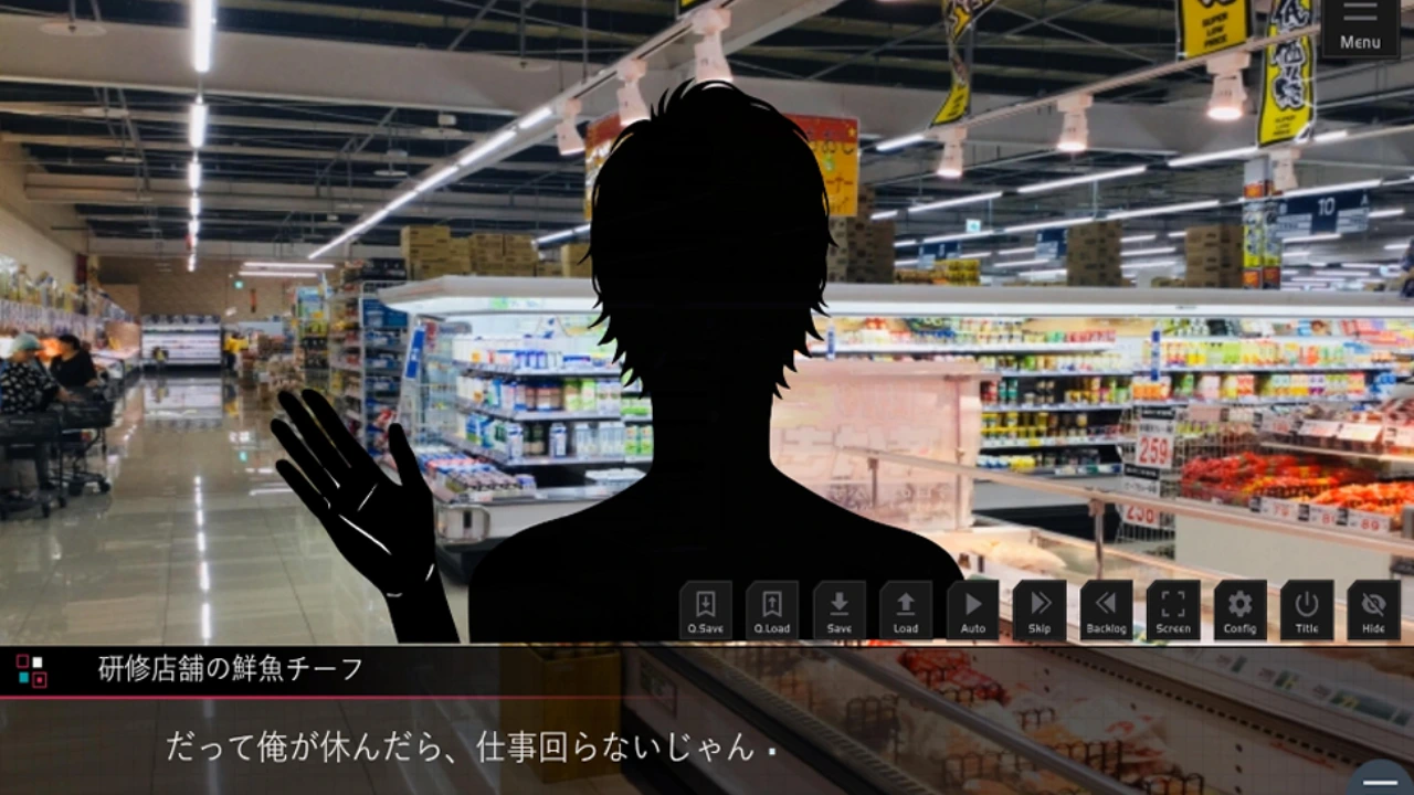 ブラウザゲーム ノベルゲームコレクションで審査中 審査が通れば、ダウンロード可能 現在は、私のホームページ上でプレイできます 【あらすじ】 ブラック企業に就職した主人公 疲労やストレスを抱え 精神的に限界を感じた頃 今までに見えなかったものが・・・ フィクションを混ぜていますが 仕事内容は、作者の実体験です 身近なスーパーで働く人の大変さが 伝わってくれたらと思います 注意 ゲーム内容に「ブラック企業」の様子が描写されているため、 トラウマや精神不安定の方のプレイはお辞めください 【キーボード】 エンターキー:ゲームを進める Ctrlキー:スキップ開始 スペースキー:メッセージ消去 【マウス】 右クリック:メッセージ消去