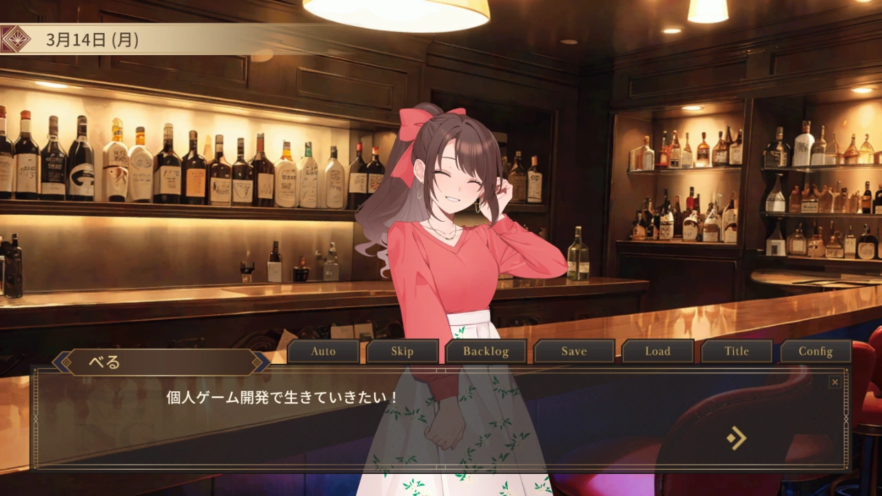 「本当にこのままでいいの?」毎日をただこなすだけのあなたへ。 98カ国を旅した歩りえこ氏ら、実在の旅人のエピソードを「8割実話」で描く、育成要素ありのヴィジュアルノベル。 東京のバー店員として彼らの破天荒な人生に触れ、共に成長する中で、あなたの凝り固まった価値観はガラリと変わるはず。 これは、迷えるあなたが「新しい自分」に出会うためのシミュレーション。 実在の旅人たち 歩りえこ 「死ぬこと以外はかすり傷」98カ国を旅したタフな美女 アルゼンチンで首を絞められ、ドバイで第5夫人に勧誘され、ワニのいる川を徒歩で渡った……そんな嘘のような「実話」の数々。彼女の語る破天荒な生存報告は、悩み多きあなたの価値観を粉々に打ち砕く。 ケンティ 「不安だからこそ、動き続ける」爽やかすぎる臆病なノマドワーカー フランスのヒッチハイクで立ち往生し、フィリピン就職直後にはロックダウン、銃声に怯えて半年で帰国……。一見華やかに見えて泥臭い彼の「キャリア迷走記」は、将来が見えないあなたの背中を優しく、力強く押してくれる。 べる 「逃げたっていい、人生はもっと自由だ」旅する個人ゲーム開発者 大手ゲーム会社を退職し、独立して挫折。欧州で男の家に連れ込まれた恐怖、そしてコンプレックス克服のための整形手術……。「社会人は最高に楽しい」と笑い飛ばす彼女の赤裸々な告白は、将来に怯えるあなたの凝り固まった常識を破壊する。 仲良くなって「本音」を引き出せ 最初は当たり障りのない世間話でも、親密度が上がれば「ここだけの話」が飛び出すことも。世界一周旅行者の「死にかけた話」や、元エンジニアの「闇深い話」など、教科書には載っていないリアルな人生哲学を聞き出してください。 あなたの選択が、店の「顔」を変える 旅人との会話で得た「経験値」と、あなたの育成したパラメーターによって、主人公が店の看板を描き変えます。あなたの成長とスタンスが、そのまま店の看板として可視化されます。 世界中の絶景を巡る120枚の背景ギャラリー ストーリーの進行に合わせて、旅人から聞いた世界中の観光地や路地裏の背景が解放されます。本作の背景の約7割は、画像生成AIを活用して制作されています。AIと人の手によって描かれた120種類の景色が、あなたの旅を彩ります。 ※AI生成された画像には、ギャラリー内で識別タグが付与されています。 価値観を「コレクション」する学びメモ 主人公は、旅人から学んだ衝撃的なエピソードや教訓をノートに記録します。 「やりたいことは、探さなくていい。楽しいの延長線上にあるから。」 「完璧な言葉なんていらない。伝えようとする不格好なジェスチャーこそが、世界と繋がる一番の魔法。」 貯まっていくメモは、迷える主人公(あなた)の新しい生き方の指針となるでしょう。 実況規約 自由に動画投稿とライブ配信が可能です。 下記の通りにして頂けると幸いです。 ・ストアページのリンクを掲載 ・公式ハッシュタグ:#旅人物語 #TravelerStories
