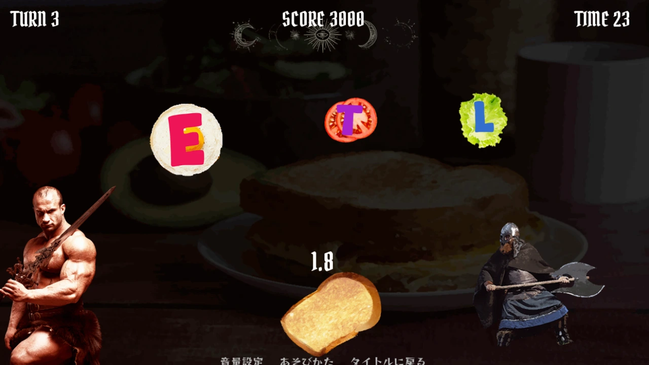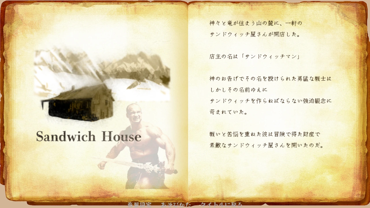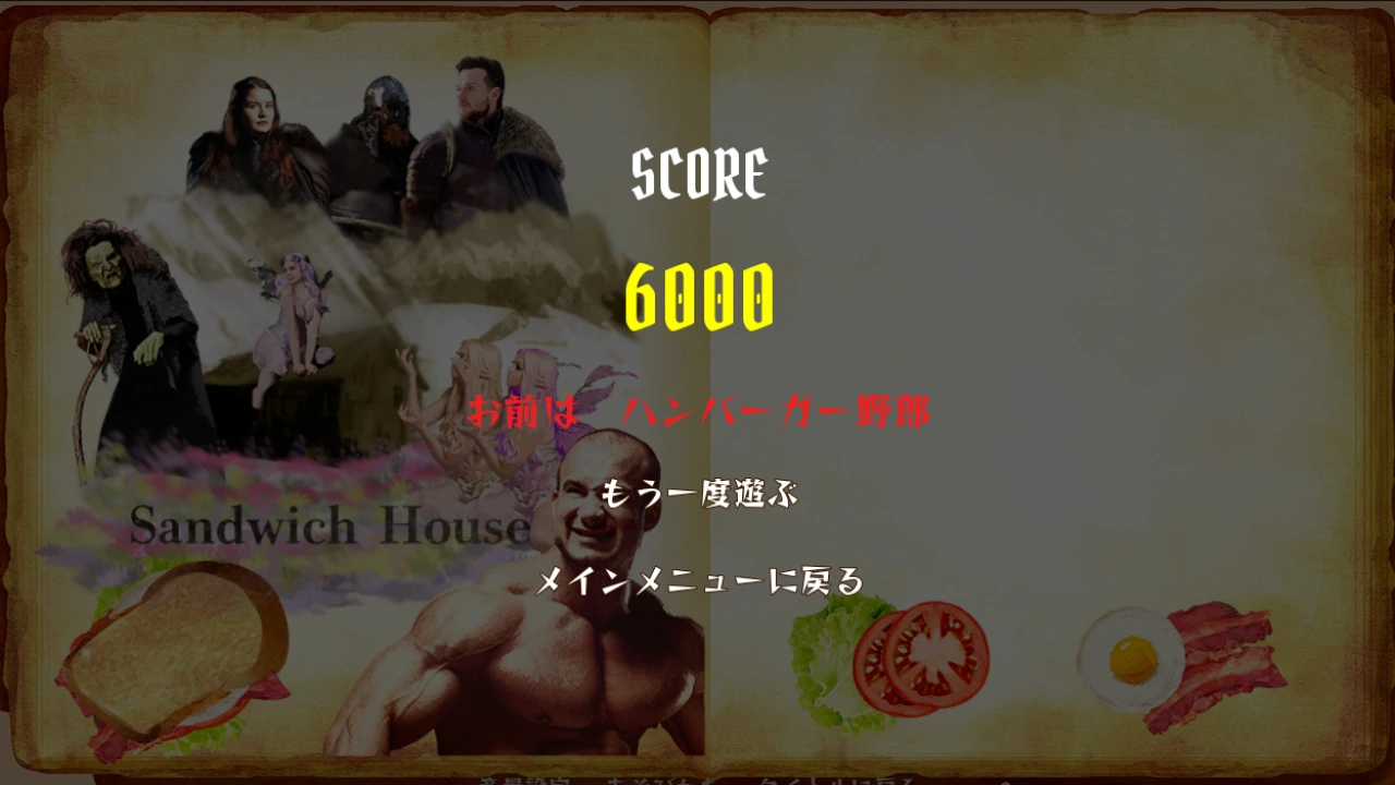 ムキムキの戦士が大声で具材の名前を叫びながらサンドウィッチを作る短編タイピングアクション!