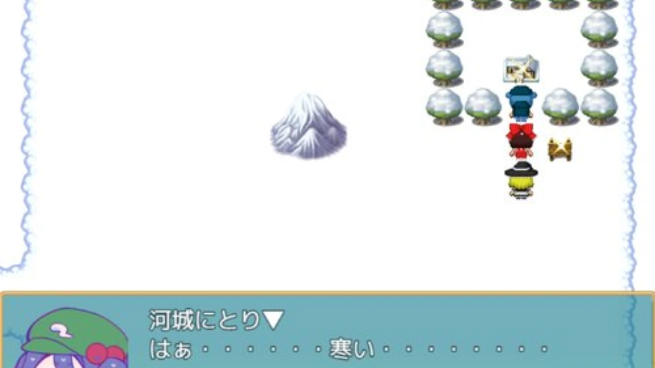 このフリーゲームは、東方Project(上海アリス幻樂団)の 二次創作で公式とは、関係ありません・・・ ご理解いただける方のみプレーお願いします。 また、初心者の制作なので、誹謗中傷、荒らし行為は、 ご遠慮下さい にとりとまったり温泉旅館 ※ブラウザはChromeが推奨です。 推奨はPCですがスマホでもプレイ可能です。 ■プレイ時間 1時間10分程度 ■ストーリー 河城にとりと仲間のモブ河童達が温泉旅館で ゆっくりすると 言う話を聞きつけて・・・・・・・・・・ 博麗霊夢、霧雨魔理沙がなぜか、ついてくることになった ★中身は、簡単なお使いゲームです ※戦闘なし ■難易度 初心者の方向けです 難易度が低いのでお子様でも楽しめます ■エンディング数 1つ ■制作ツール RPGツクールMV ■制作期間 8日 ■実況などについて ・プレイ動画のアップロードや実況プレイなどは、 良識の範囲内でご自由に行っていただいて構いません! タイトル、制作者名と 二次創作との記載を入れて頂けたら助かります!