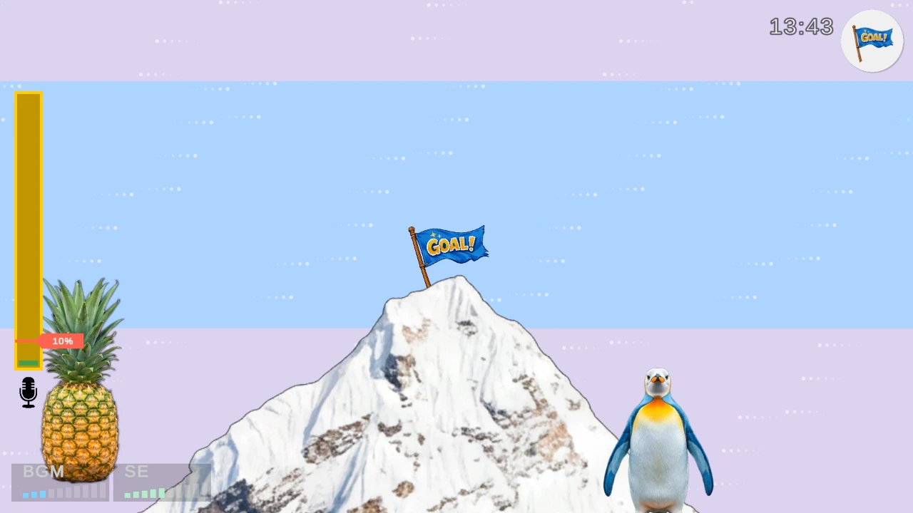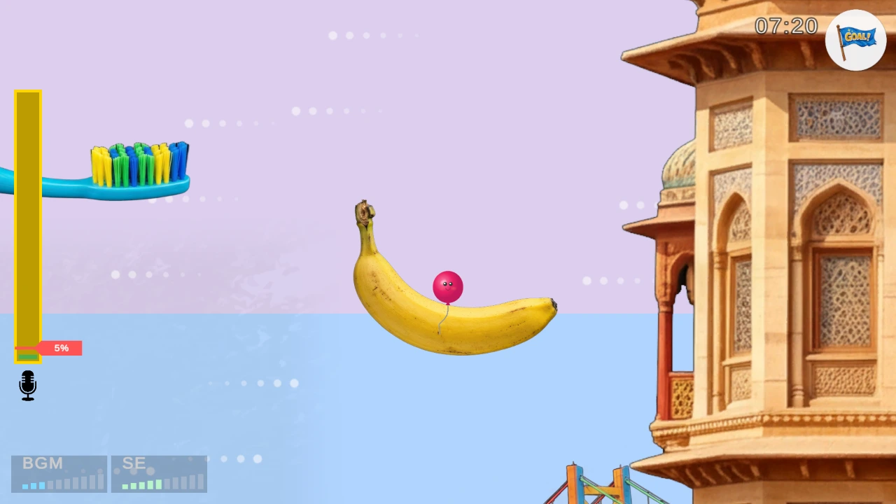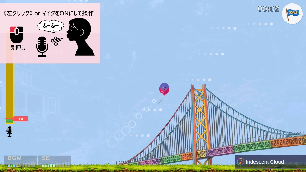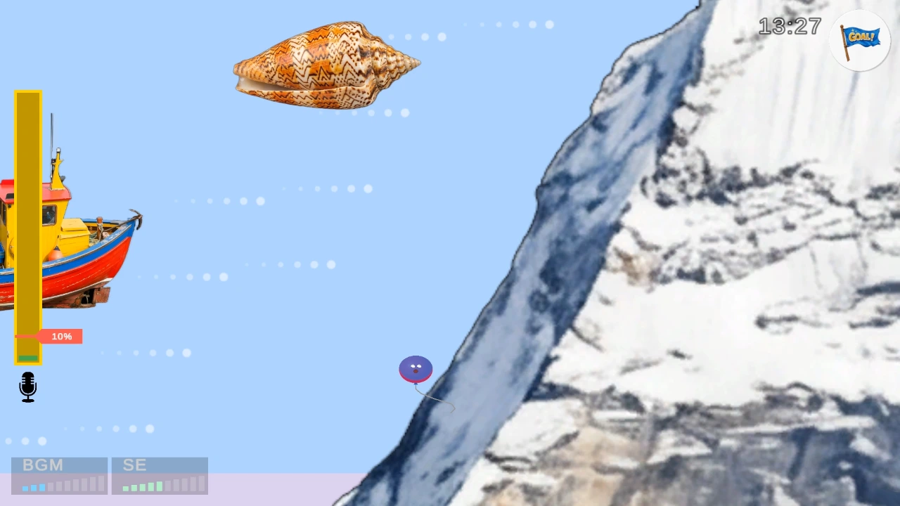 マイク入力対応の登山系アクションゲームです。 左クリック長押しでも操作可能です。 いわゆる苦行系ですが、もしかするとマイクに向かって 息を吹きかけられているリスナーの方が苦行かもしれません。 実況プレイと相性抜群! もしくは相性最悪のどちらかだと思います。