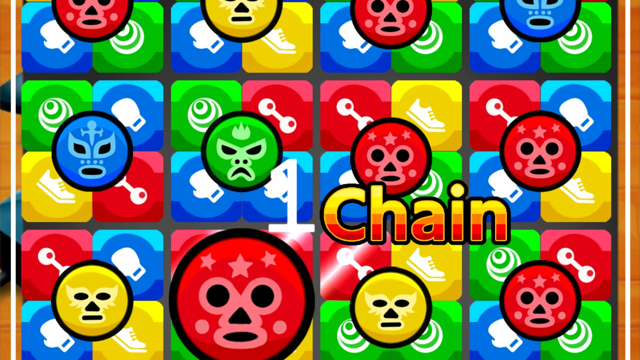 タップして回して、つなげて消す! フクメンレスラーたちと挑む、爽快連鎖パズルゲーム! 「レッスルパズル」は、丸いフクメンレスラーの顔をタップしてブロックを回転させ、同じ色のブロックを顔から4つ以上つなげて消していく、シンプル操作で奥深いパズルゲームです。 ブロックを消すたびにレスラーたちはカロリーを消費! さらに連鎖が発生すると、より多くのカロリーを燃やすことができます。 制限時間内にステージごとの目標カロリーに到達できればクリアです。 簡単操作で誰でも遊べるのに、回転のタイミングやブロック配置を考える戦略性もしっかり楽しめる、やみつき系の爽快パズルです。 遊び方 画面に表示されている丸いフクメンレスラーの顔をタップすると、 その周囲にある4つのブロックが右回りに回転します。 ブロックをうまく回転させて配置を整え、 顔ボタンからつながった同じ色のブロックを、縦または横に3つ以上そろえると消去! • 同じ色をそろえてブロック消去 • 連鎖を狙って大量カロリー消費 • 制限時間内に目標達成でステージクリア ルールは簡単。 でも、どこを回せば連鎖が起きるか、どの色を優先するかで結果が大きく変わります。 ひらめきと判断力が試される、絶妙なパズル体験を楽しめます。 ストーリー ここは、F県F市H区にある「マッスル道場」。 赤・青・黄・緑の個性豊かな4人のフクメンレスラーたちは、 おいしいものを食べすぎて、いつの間にか体重オーバーに……。 このままでは試合に勝てない! それどころか、リングに立つ前から大ピンチ! そんな彼らを待ち受けていたのは、 厳しくも情熱的なボスによるハードなトレーニング。 今日もマッスル道場では、 フクメンたちがカロリー消費のために激しい特訓に挑みます。 果たして彼らは、無事にカロリーを燃やし、 ベストコンディションでリングに立つことができるのか――!? 登場キャラクター フクメン 常に覆面をかぶった謎のレスラー集団。 「フクメン」という名前には、 • 覆面をかぶっている • F岡県在住のメンバー というダブルミーニングが込められています。 赤・青・黄・緑、それぞれ個性はバラバラ。 でも共通しているのは、おいしいものに目がないこと! 食べすぎて太ってしまった彼らは、今日もマッスル道場でダイエット特訓に励みます。 ボス マッスル道場を取り仕切る、謎多き指導者。 その正体は一切不明ですが、厳しい指導と的確なトレーニング内容から、かなりの実力者であることは間違いありません。 フクメンたちにとっては恐ろしくもあり、頼れる存在でもあります。 このゲームの特徴 • タップだけの簡単操作で誰でもすぐ遊べる • ブロック回転×連鎖の爽快パズル • 連鎖が決まったときの気持ちよさがクセになる • 見た目はコミカル、中身はしっかり戦略的 • 個性豊かなフクメンレスラーたちの世界観が楽しい • 全30ステージでじっくり挑戦できる こんな人におすすめ • パズルゲームが好き • 連鎖が気持ちいいゲームを遊びたい • 短時間でサクッと遊べるゲームを探している • シンプル操作でもやりごたえのあるゲームが好き • ちょっとユニークでクセになる世界観を楽しみたい • レスラーやコミカルなキャラクターが好き フクメンレスラーたちと一緒に、目指せカロリー消費! 回して、つなげて、連鎖を決めろ! 「レッスルパズル」で、全30ステージ制覇に挑戦しよう!