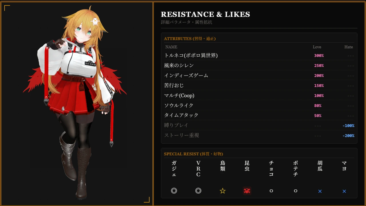 🟢 大好物&得意なジャンル ・不思議のダンジョン系 ・ローグライク、ローグライト ・アクションプラットフォーマー ・FPS ・ソウルライク ・3Dダンジョン探索 ・エジプト ❌ 苦手なジャンル ・STG ・難解パズル ・重厚なストーリーRPG 読み物メイン(私はストーリーをスキップするゲーマーです!) ・虫がメインのもの(本当に苦手です…!) ・ユーザーが介入できない完全放置ゲー